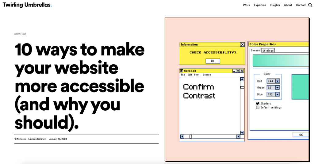 “While it is often discussed in the context of design decisions such as colour contrast, readability, and navigation for specific physical disabilities, accessible websites can actually provide a better and more enjoyable experience for all users, regardless of ability or disability.”